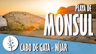La Cala de Mónsul es, junto con la playa de Los Genoveses, la más famosa del Parque Natural de Cabo de Gata, puesto que ha aparecido en multitud de películas y anuncios. En ninguna otra parte del Parque Natural queda mejor reflejado el origen volcánico del mismo. Tiene un parking desde el cual se accede rápidamente a la playa, sin embargo en época estival el acceso está limitado a un determinado número de coches y una vez rebasado el cupo la única forma de acceder es en autobús.